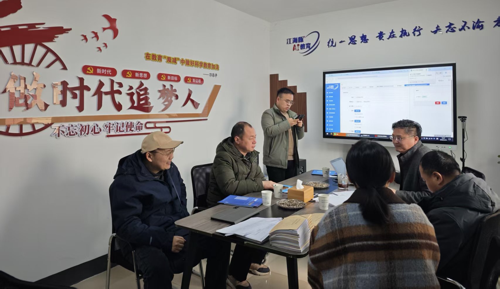 考察期间,创始人万总向领导团队进行了系统、详细的专题汇报。汇报全面阐述了公司以国家政策为导向,以“技术驱动教育革新”为核心的发展理念,重点展示了公司在人工智能、大数据与教育融合领域的技术突破与产品创新。