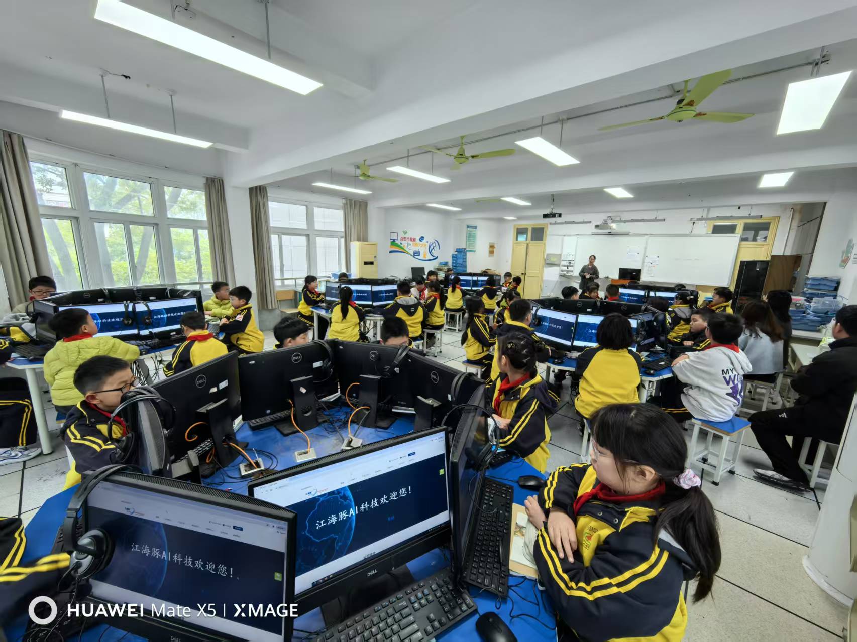 为确保两所学校的试点工作顺利推进,江海豚公司展现出高度的专业性与服务意识,分别派出两位资深技术老师驻校进行全程保障服务。从平台操作培训、课程资源适配,到课堂实时响应、数据反馈分析,保障团队与一线教师紧密协作,确保技术真正服务于教学,让AI能力在真实的课堂场景中“用得上、用得好、用得深”。